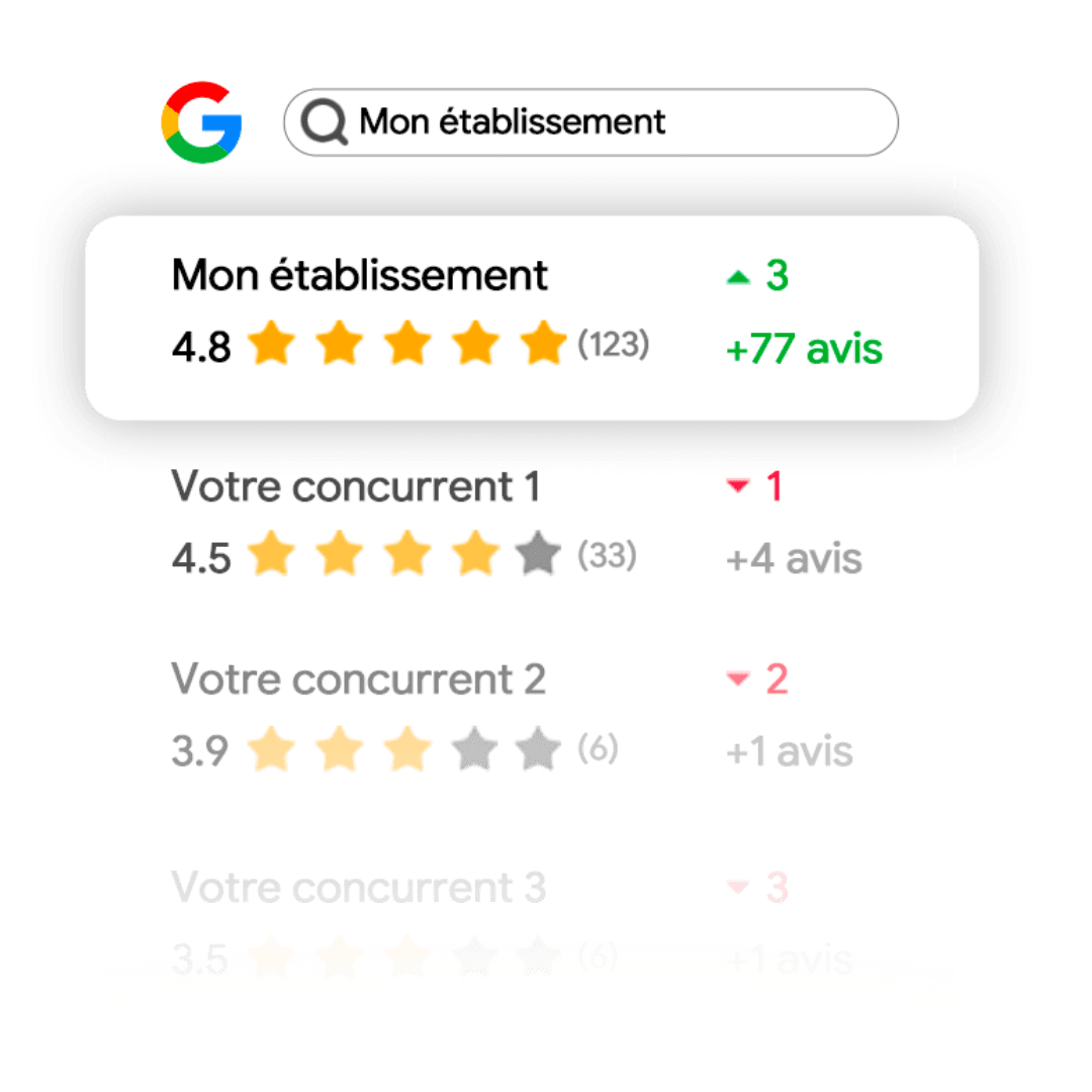 Récoltez en moyenne 8 fois plus d'avis Google par jour, et hissez vous au sommet du classement Google dans votre secteur !